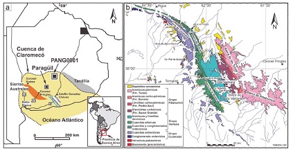 El pozo PANG0001 se encuentra ubicado en la Cuenca de Claromecó (Provincia de Buenos Aires, Argentina) y atraviesa rocas pertenecientes a la Formación Tunas (Pérmico; Harrington 1947). Esta formación está compuesta por areniscas finas a medias que se intercalan con fangolitas negras y grises y con capas de carbón y fangolitas carbonosas de hasta 3 m de espesor. Para este trabajo se llevó a cabo un análisis petrográfico en las fangolitas negras y el carbón con el objetivo de determinar el tipo de carbón presente y su rango (o nivel de maduración), a fin de conocer de este último, su ambiente de depositación, su potencialidad oleogenética y el nivel de diagénesis alcanzado por la Formación Tunas. Los carbones están formados por bandas monomacerálicas de collovitrinita y gelovitrinita, del grupo de la vitrinita y bandas de fusinita, del grupo de la inertinita. El ambiente original de depositación corresponde a un bosque pantanoso, con períodos de tiempo alternantes entre húmedos y secos. La reflectancia de la vitrinita presenta valores entre 1,3 y 2,4 %, los cuales permiten clasificar a los carbones como bituminosos con bajo contenido de volátiles a semiantracíticos. En función de estos datos se estima que la Formación Tunas alcanzó la ventana de generación de gases húmedos y condensados hasta gas metano, en un estadio de mesogénesis a mesogénesis tardía dentro de la diagénesis.