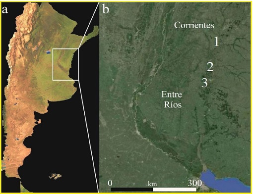 The coastal region of Uruguay River at the SE of the Corrientes province and NE of Entre Rios province yielded