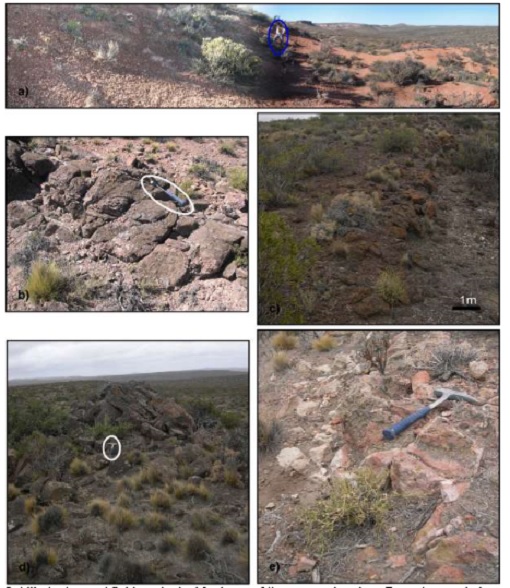 Abstract: Subcircular features, with crater morphology, developed in a volcano-sedimentary context, with diameters no greater than 2 km, were recognized in the vicinity of the Telsen locality, northeastern Chubut Province, Argentina. These structures are surrounded by tabular volcanic rocks of the Quiñelaf Forma-tion with low radial-centrifugal dip, exhibit an external ring with dark visual levels enclosing topographic highs with mostly light visual levels. Surficial geological aspects of one of the larger structures in the area (S 42° 22’ 55’’, W 66° 49’ 15’’) were mapped from raster data at a scale of 1:3.000, following the stages of the photographic interpretation. Panchromatic and multispectral Spot images, and Google Earth image with 0.5 m. spatial resolution were used. Idrisi, Global Mapper, StitchMaps and Corel Draw sofitware were used in the digital processing. The geological references of the area were obtained from the Telsen Geolo-gical map, herein georeferenced with Global Mapper. The frequency distribution histograms of the image windows of the different mapped sectors, allowed the generation of different contrast enhancements. Di-rectional flters of the menu texture analysis of Idrisi permitted the identification of the oriented features. The images obtained herein, allowed the recognition of homogeneous units in terms of interpretation keys linked to the photo-analysis phase. Subsequent feld observations contributed to the adjustment and to the final assignment of categories to each homogeneous unit (photo-interpretation last stage).The final map was compiled with the sofitware Corel Draw, it was based on the synthesis image from the digital processing and referenced using Global Mapper. Deposits and fragments of basalt that constitutes the external ring of the crater along with different volcanic rocks, breccia and Chubut Group rocks fragments enclosed within the crater are mainly showed in this map. Also, deposits and dipping strata of the Chubut Group following the strike of the ring and outcrops of volcanic rocks in the central - south part of the mapped area were recognized. Detailed geophysical surveys detected magnetic anomalies in the SE part of the mapped crater. Several mechanisms such as magmatism, phreatomagmatism and/or bolide impacts constitute hypotheses related to the probable origin of these landforms.