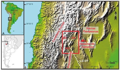 and Precordillera of La Rioja is presented. Three main depositional areas are recognized: 1. Sierra de Los