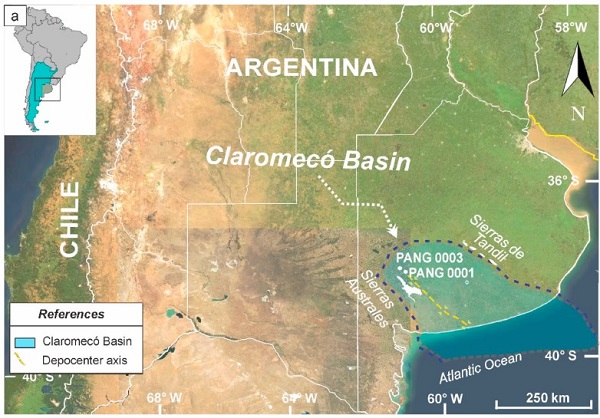 The PANG 0003 well records a siliciclastic sedimentary succession corresponding to the Tunas Formation (Permian) in the Claromecó Basin area (Buenos Aires province, Argentina). The aim of this paper is to establish a relationship between fracture frequency in the PANG 0003 exploration well and AMS parameters, as it is a novel research topic that would contribute to the knowledge of the Claromecó basin. Opening-mode I and mode II/III fractures were found in 729 m of unoriented core between 901 m and 170 m recovered. Fracture attributes: inclination, aperture, height, and cement presence are represented by four fracture sets according to the inclination angle; representative kinematic aperture data range from 0 to 5 mm and height constrain by core dimensions. Cement presence is represented by quartz, calcite, and minor pyrite. Fracture description were distributed in lower, middle and upper section of the well according to their fracture frequency (number of fractures per meter). Lower section is represented by a high fracture frequency (13 fractures/meter), which notably diminishes to the middle and upper section of the well (3 fractures/meter). The results indicate that the fracture frequency increases in depth and has a direct relationship with AMS parameters, such as degree of anisotropy (Pj) and magnetic foliation (F). According to previous studies in Sierras Australes outcrops and subsurface for Tunas Formation, tectonic imprint decreases its expression from base to top of the unit and has a positive correlation with fractures studies on cores. This relationship could be used as an alternative methodology to distinguish intervals of high number of fractures in subsurface, in this particular case, for the Claromecó Basin.