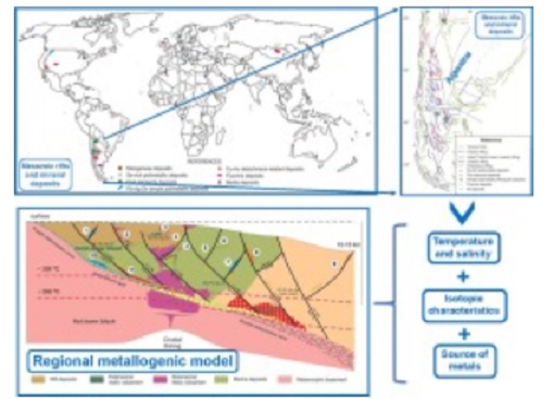 Mineral systems associated with extensional fault systems in continental environments and not related to magmatic activity involve various deposit models that can be grouped into a single system which would plausibly explain the source and chemical composition of fluids, the formation depth, the source of heat and the structural history within a common geologic setting. Mineral deposits related to this tectonic setting are those described within the detachment-related model, including massive replacements, stockworks and veins of Cu and Fe oxides (with or without Au), polymetallic sulfide veins, barite and/or fluorite veins and stratabound and vein Mn deposits. This paper reviews the abovementioned deposits as well as others related to this tectonic setting, such as Se-rich polymetallic deposits, Almadén type Hg deposits, U-Ni-Co-As-Ag polymetallic deposits with subordinated Bi-Cu-Pb-Zn (five element deposits), simple polymetallic Pb-Ag-Zn deposits, and the members of the IOCG clan (including the Au-Ag detachment-related deposits) involved in the Cu-Fe (-Au) model deposits. All these mineral deposits are the result of fluid motion unrelated to magmatism in areas of thermal anomalies. These fluids collect certain elements producing a district mineralogical specialization with inhomogeneities in the distribution of mineralization types along the region affected by rifting. Fluid homogenization temperatures and salinities range between 60° and 430 °C, and 0 and 27 equivalent wt% NaCl, respectively. The O, S and D isotope composition is consistent with basinal poral fluids derived from meteoric waters under different P-T conditions in an active faults environment. Pb isotopes suggest that Pb derives from a mixture of rocks with a long period of residence in the upper crust and rocks deformed along repeated orogenic cycles with a contribution of Pb from the lower crust and even the mantle. Fluid flow along fault planes leads to different types of hydrothermal alterations depending on P-T conditions, particularly propylitization and low temperature potassium metasomatism. All such deposits can be found in two different geotectonic environments of metallogenic interest involving extensional faults associated with detachment zones in depth; i.e., 1) continental extension in a back-arc environment and 2) extension with rift development and generation of oceanic crust in a passive continental margin. Although the economic importance of this group of deposits is mainly related to industrial minerals, non-magmatic IOCG deposits could significantly augment the economic potential of this setting. The rift setting itself, without relation to detachments, is favorable for concentrating metals in stratabound deposits such as SEDEX ores. Additionally, the development of deposits directly related to magmatic activity contributes to the economic interest of this environment.