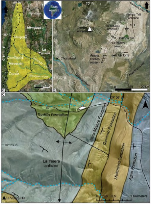 Muerta) a una plataforma mixta (Formación Quintuco). Para ello, se realizaron un perfil litoestratigráfico, mediciones de radioactividad