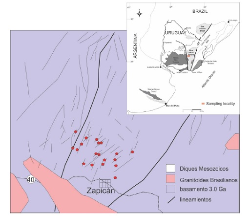 Nuevo estudio paleomagnético y de magnetismo de rocas realizado en el Enjambre de Diques Básicos de Nico Pérez-Zapicán, Uruguay