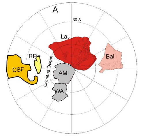 entre Laurentia-Amazonia-Africa Occidental por un lado y Río de la Plata y Congo-Sao Francisco por el