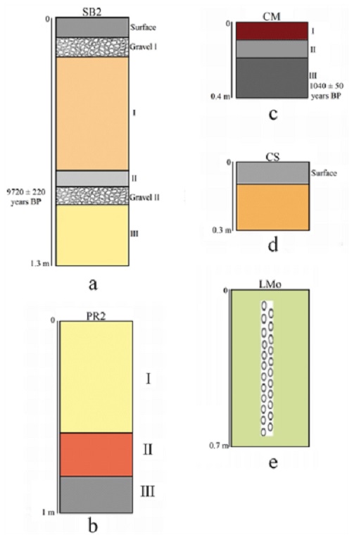 Detailed palaeomagnetic research performed in archaeological and paleontological sites in southern South America yielded a number of highly fluctuating paleosecular variation records with geomagnetic field excursion(s) during the Holocene. To assess this topic a variety of sections of recent sediments were sampled. In the case presented here they belong from diverse continental sedimentary sequences formed in coastal marine and cave’s environments. Paleomagnetic samplings were performed in several deposits in San Blas Bay and Pali Aike areas, respectively located in the northern and southern parts of Argentinean Patagonia region. To collect samples, cylindrical plastic containers 2.5 cm long and 2 cm diameter were carefully pushed into the sections, overlying each other by about 50 percent. Their strike and dip were measured using a Brunton compass and inclinometer; they were consolidated with sodium silicate after removal and numbered from top to bottom. All samples were subjected to progressive AF demagnetization in steps of 3, 6, 9, 12, 15, 20, 25, 30, 40 and 60 mT in a 3-axis static degausser attached to a 2 G cryogenic magnetometer. Additional steps from 80 to 120 mT were used in some samples. Characteristic remnant magnetization was calculated using principal-components analysis, with the best-fitting line going to the origin in the Zijderveld diagrams. In general, maximum angular deviations were generally within low values. Some samples had univectorial behavior, while some showed two or three components. Most of the sections show normal and intermediate polarity directions far from the present GF, while reversed polarities were recorded at San Blas 2, La Serranita 1 and Punta Rubia 2 sites in San Blas Bay as well Saenz cave in the Pali Aike area. They show similar directions observed in nearby sites from southern Patagonia in Argentina and Chile. In fact, previous results obtained at Mylodon, Cueva del Medio, Don Ariel and Las Buitreras caves yielded remanence directions corresponding to obliquely normal, obliquely reversed and reversed field polarity directions with similar VGPs. This situation strengthens the hypothesis of the existence of the Mylodon excursion in southern Patagonia. On the other hand, the presence of intermediate and reverse VGPs in San Blas records and other sites also supports its regional extent in the southern cone of South America. If the presented paleomagnetic features are true GMF behavior, the remarkably PSV record can serve to correlate regional stratigraphies, and to determine relative and absolute chronologies. Besides, if the anomalous directions represent excursions, they may be also used as dating devices, becoming excellent magnetostratigraphic markers for the time-span covered by the paleomagnetic record of the sites presented in this paper.