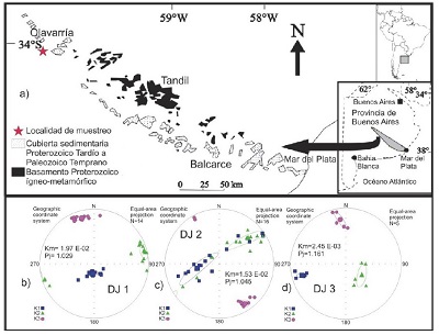 de rumbo ENE-WSW. El estudio paleomagnético permitió calcular las direcciones medias para cada sitio