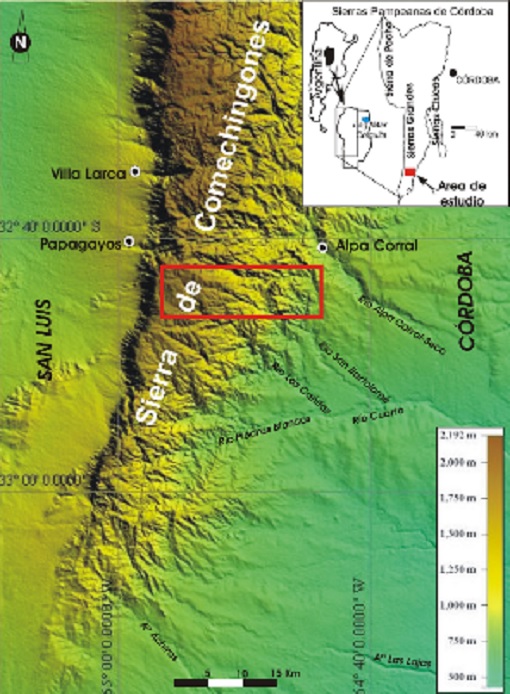 Wet-meadows are wetlands of high environmental value and common in the Patagonia, Cordillera de los Andes and Pampean Ranges of Argentina. Particularly, the studies about the functioning and dynamics of wet-meadows are still insufficient and partials in Pampean Ranges. In this paper we analyze the geological-geomorphological factors that influenced the origin, distribution, morphometry and dynamics of wet-meadows in highlands of the southern Comechingones Range (Pampean Ranges of Córdoba, Argentina). A paleoenvironmental reconstruction from sedimentological, palynological, diatomological and chronological records of one of these systems is also proposed. The study area is located at an erosion paleosurface developed previously to the andean orogeny, on an igneous-metamorphic basement rocks. This paleosurface is preserved in the eastern slope of the Comechingones Range and shows different degree of fluvial incision. Most wetmeadows are linked to geomorphological environments with low morphodynamic activity, especially in the granitic rocks and loessic/loessoid deposits preserved in summit plains. The main source of sediments for wet-meadows is the reworking of Quaternary loessic/loessoide sequences. The wetmeadow paleorecords suggests the persistence of wetlands in the Comechingones Range highlands during most of the Holocene, with contractions and expansions in response to environmental variability. The Holocene climate conditions were variable, mainly related to changes in water availability and temperature. A drier period than the current, at least temporarily, took place between ca. 7,000 and 4,700 cal. years BP (6,400 and 4,100 14C years BP). Climatic conditions similar to the current ones were likely established since 4,700 cal. years BP (4,326 14C years BP). During the last centuries, incision and drainage networks integration processes, promote the removal of several wetlands, especially since 1,970s due to precipitation increasing and, subordinately, frequent wildfires.
